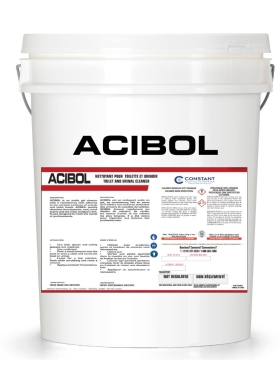 TOILET AND URINAL CLEANERACIBOL is an acidic gel cleaner with a consistency that adheres to the vertical surfaces of urinals and toilet bowls. ACIBOL quickly dissolves lime deposits, rust, urine stains and the most stubborn dirt. It was designed to meet the needs of professionals.